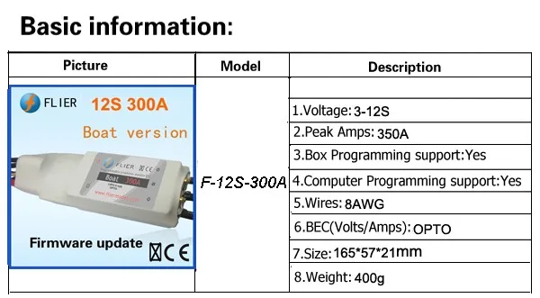 12S 300A brushless controller ESC for Boat with BEC